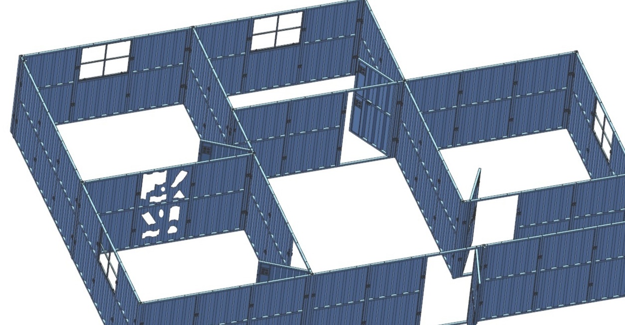 (2)中間墻體:主體墻板為鍍鋅瓦楞板,梯形波結(jié)構(gòu),波高為36mm,波寬78mm,板厚1.2mm±5%;戰(zhàn)術(shù)功能墻板上部分為活動(dòng)內(nèi)框,可拆卸,可模擬窗口、卡槽可安裝玻璃等,下部分為鍍鋅瓦楞板;戰(zhàn)術(shù)射擊墻板上下為鍍鋅瓦楞板,不同位置可開(kāi)設(shè)10個(gè)不同大小射擊口(數(shù)量、形狀可根據(jù)要求定制);戰(zhàn)術(shù)門(mén)板內(nèi)置可開(kāi)合鍍鋅瓦楞板門(mén)面,門(mén)面安裝開(kāi)關(guān)拉手、限位磁力卡榫。